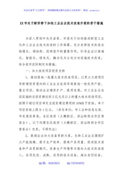 / XX市关于新形势下加快工业企业技术改造升级的若干措施