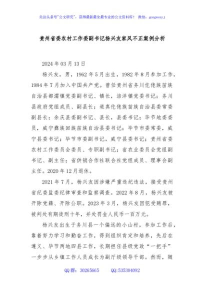 / 贵州省委农村工作委副书记杨兴友家风不正案例分析