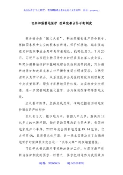 切实加强耕地保护 改革完善占补平衡制度