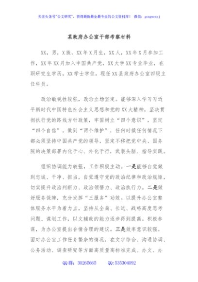 / 某政府办公室干部考察材料