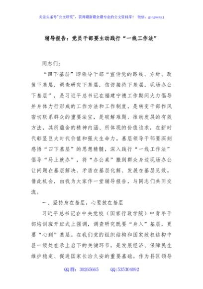 / 辅导报告:党员干部要主动践行“一线工作法”