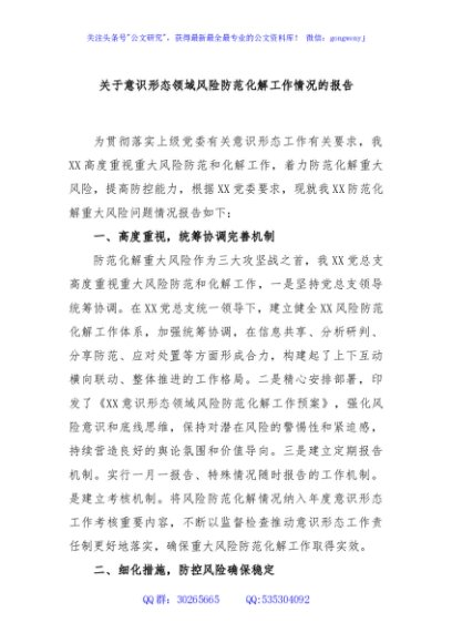 关于意识形态领域风险防范化解工作情况的报告