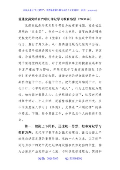 普通党员党结合六项纪律纪学习教育感悟(2808字)