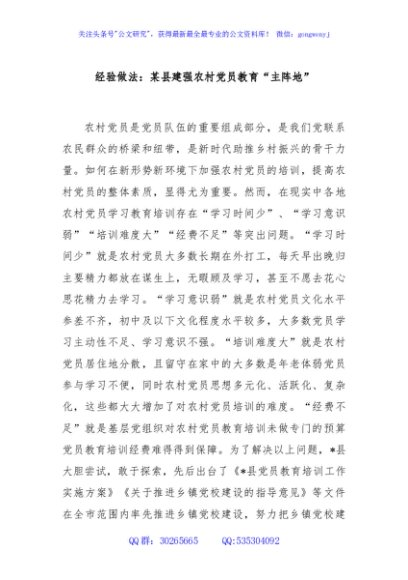 / 经验做法:某县建强农村党员教育“主阵地”