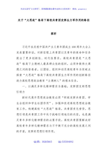 / 关于“大思政”格局下高校共青团发挥生力军作用的路径探析