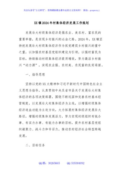 / XX镇2024年村集体经济发展工作规划