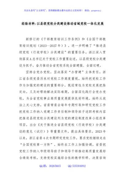 / 经验材料以县级党校分类建设推动省域党校一体化发展