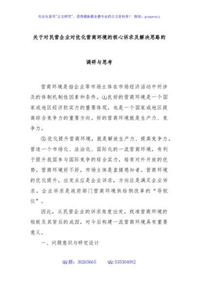 / 关于对民营企业对优化营商环境的核心诉求及解决思路的调研与思考