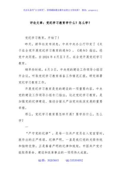 / 评论文章:党纪学习教育学什么?怎么学?