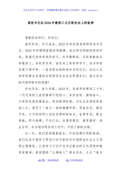 / 高校书记在2024年教职工元旦联欢会上的致辞
