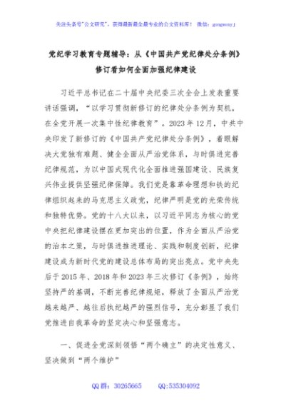/ 党纪学习教育专题辅导:从《中国共产党纪律处分条例》修订看如何全面加强纪律建设