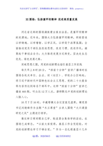 / XX围场:弘扬塞罕坝精神 促进高质量发展