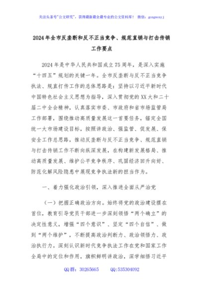 / 2024年全市反垄断和反不正当竞争、规范直销与打击传销工作要点