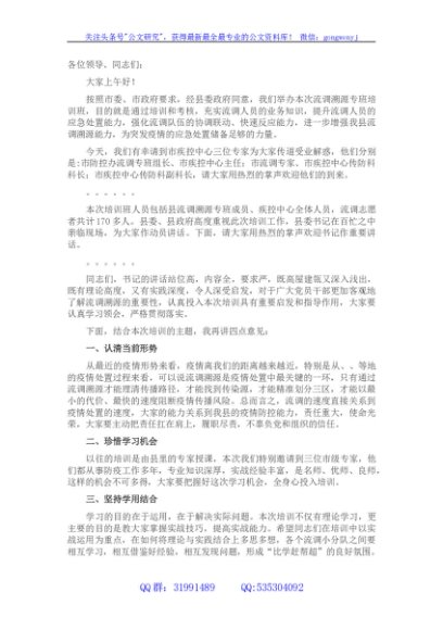 / 流调溯源培训专班开班仪式主持词