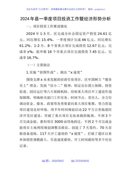 / 2024年县一季度项目投资工作暨经济形势分析报告