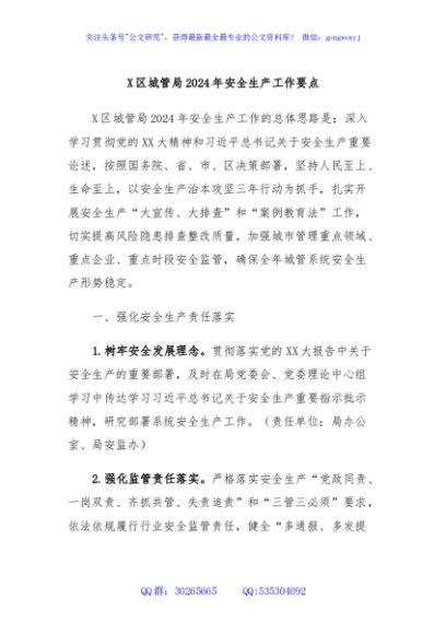 / X区城管局2024年安全生产工作要点
