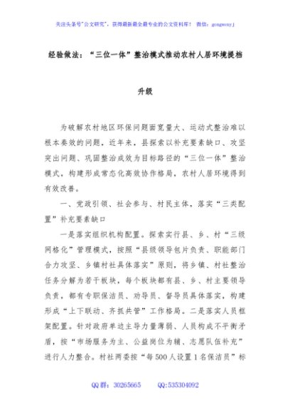 经验做法:“三位一体”整治模式推动农村人居环境提档升级
