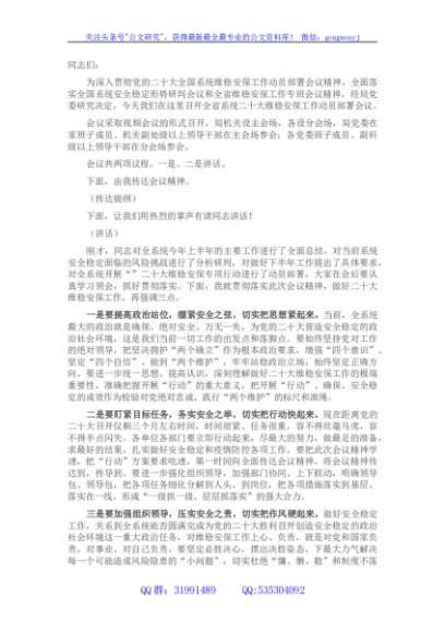 / 某系统二十大维稳安保工作动员部署会主持词