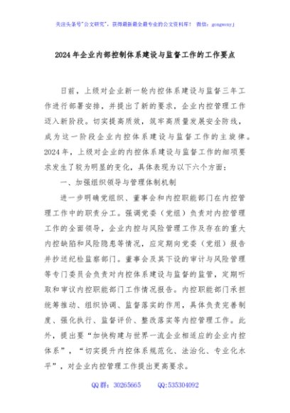 / 2024年企业内部控制体系建设与监督工作的工作要点