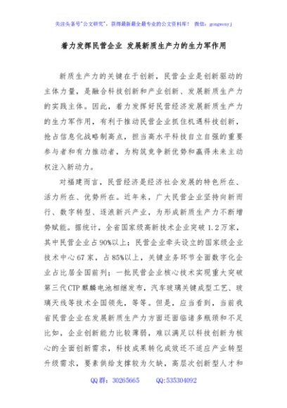 / 着力发挥民营企业 发展新质生产力的生力军作用