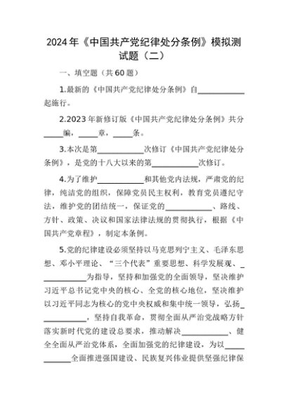 / 2024年《纪律处分条例》模拟测试题(二)