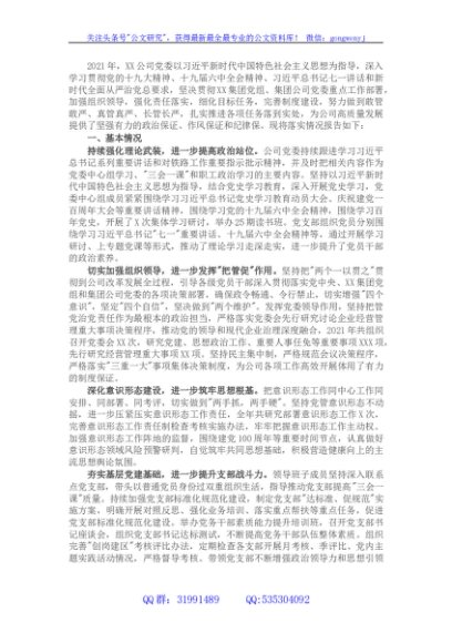 / 国企党委关于2021年度落实全面从严治党主体责任情况的报告