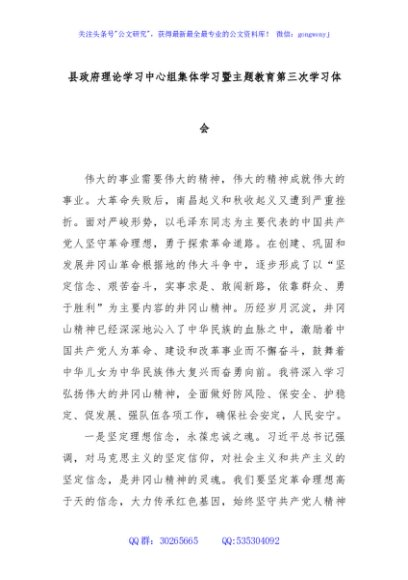 / 县政府理论学习中心组集体学习暨主题教育第三次学习体会