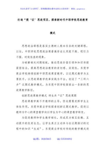 打造“莞‘议’思政项目,探索新时代中职学校思政教育模式
