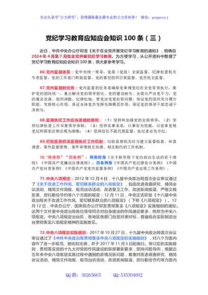 党纪学习教育应知应会知识100条(三)党员干部学习(讲稿)