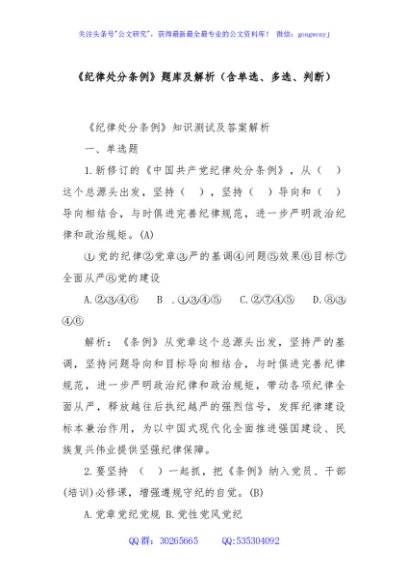 / 《纪律处分条例》题库及解析(含单选、多选、判断)