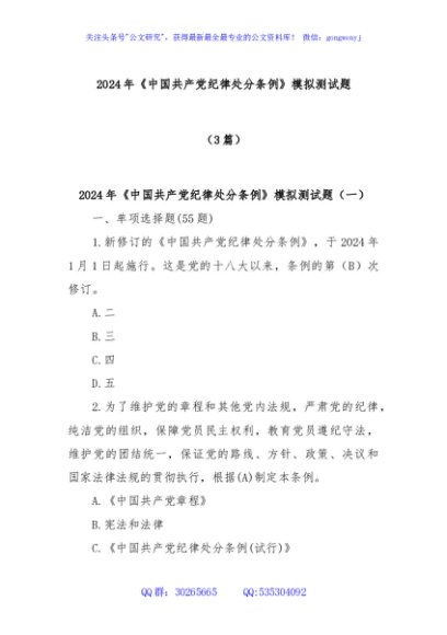 / (3篇)2024年《中国共产党纪律处分条例》模拟测试题