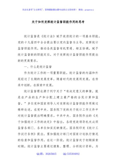 / 关于如何发挥统计监督职能作用的思考