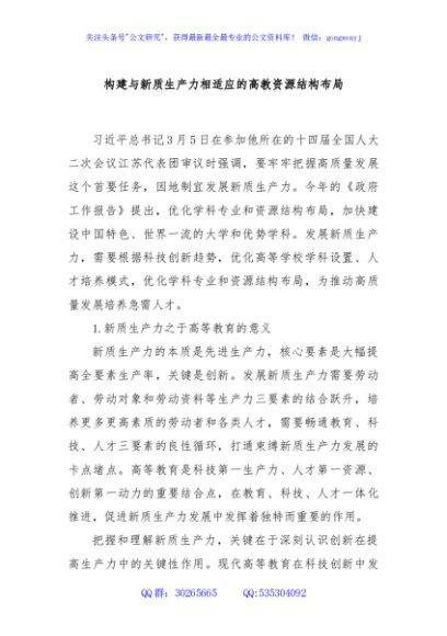 / 构建与新质生产力相适应的高教资源结构布局