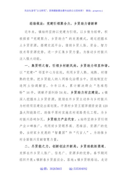 / 经验做法:党建引领聚合力,乡贤助力谱新章