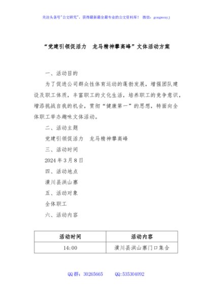 / “党建引领促活力 龙马精神攀高峰”文体活动方案