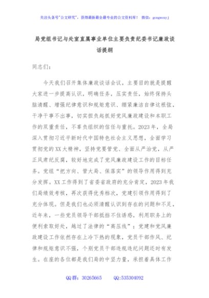 / 局党组书记与处室直属事业单位主要负责纪委书记廉政谈话提纲