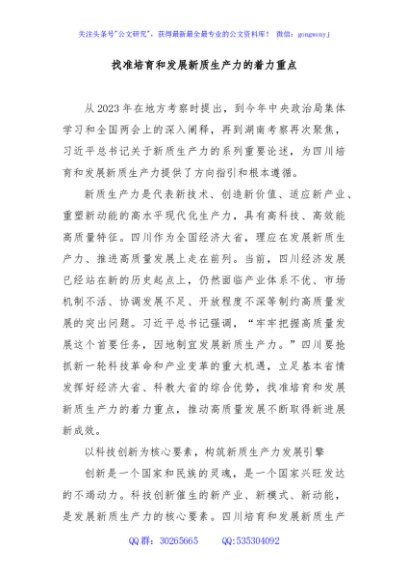 / 找准培育和发展新质生产力的着力重点