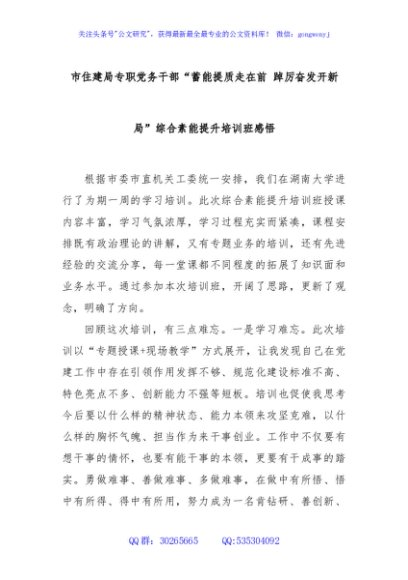 / 市住建局专职党务干部“蓄能提质走在前 踔厉奋发开新局”综合素能提升培训班感悟