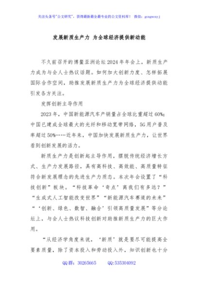 发展新质生产力 为全球经济提供新动能