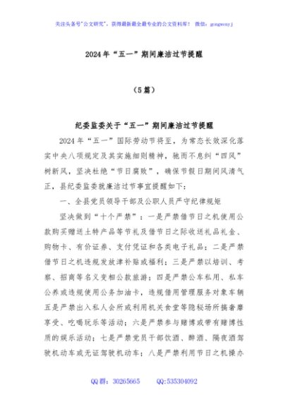 / (5篇)2024年“五一”期间廉洁过节提醒