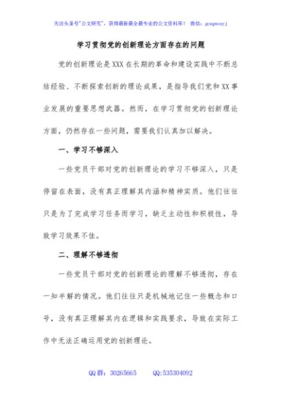/ 学习贯彻党的创新理论方面存在的问题