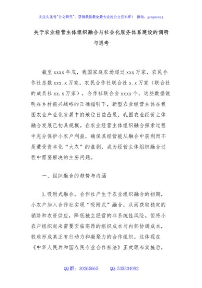 / 关于农业经营主体组织融合与社会化服务体系建设的调研与思考