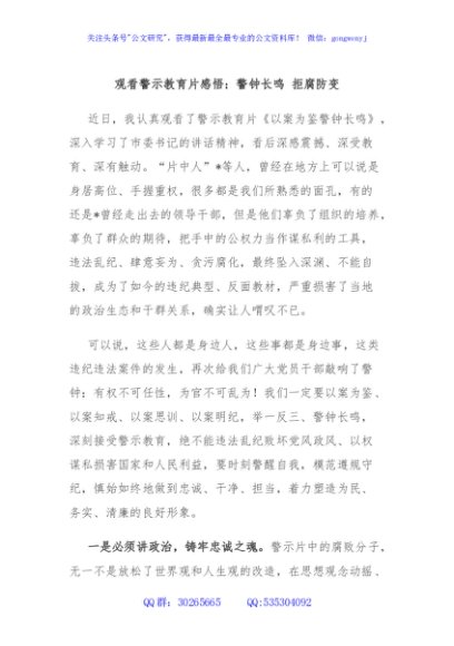 观看警示教育片感悟:警钟长鸣 拒腐防变