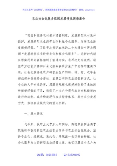 / 农业社会化服务组织发展情况调查报告