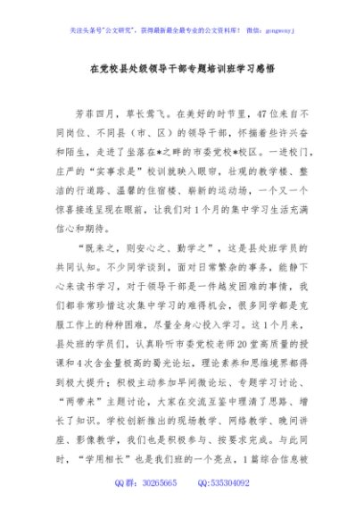 / 在党校县处级领导干部专题培训班学习感悟