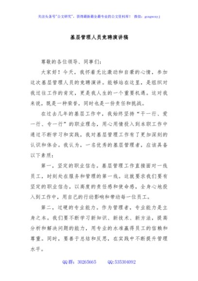 / 基层管理人员竞聘演讲稿