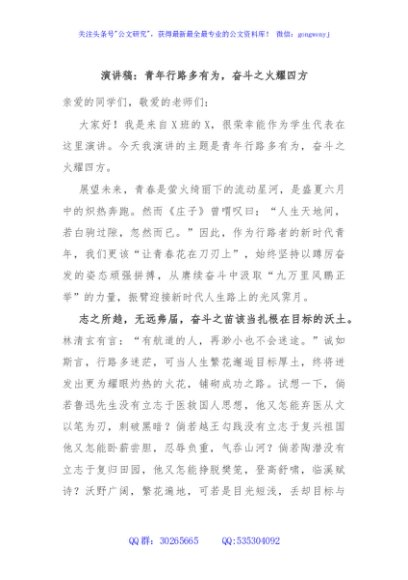 / 演讲稿:青年行路多有为,奋斗之火耀四方