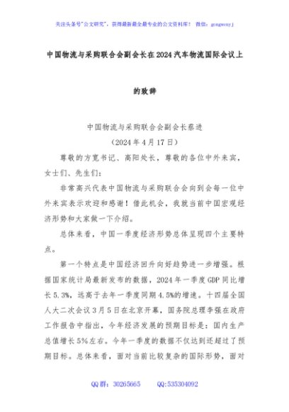 / 中国物流与采购联合会副会长在2024汽车物流国际会议上的致辞