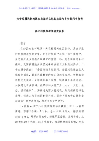 / 关于边疆民族地区生态振兴在脱贫攻坚与乡村振兴有效衔接中的实践探索研究报告
