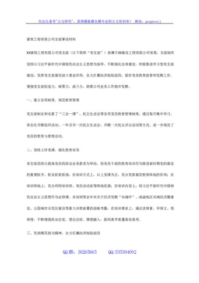 / 建筑公司党支部先进事迹